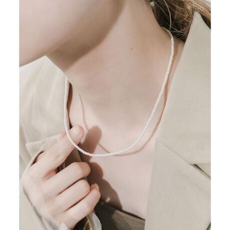 控えめなサイズ感ながらもパールの柔らかな光沢が首元を明るく上品に見せてくれるネックレス。