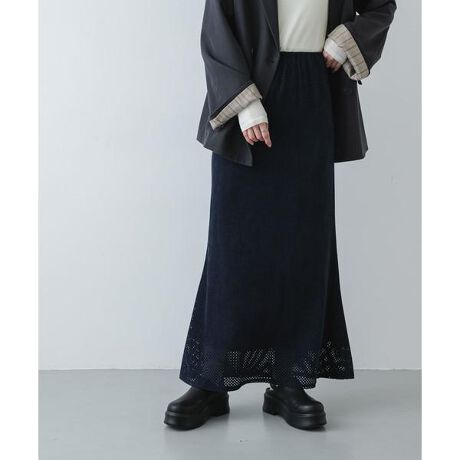 【パンチングデザインが目を惹くスウェード調ナロースカート】