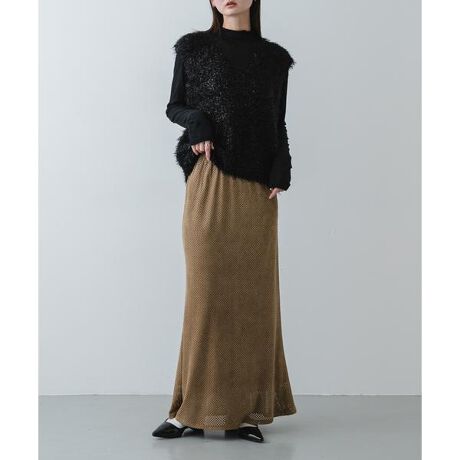 【パンチングデザインが目を惹くスウェード調ナロースカート】