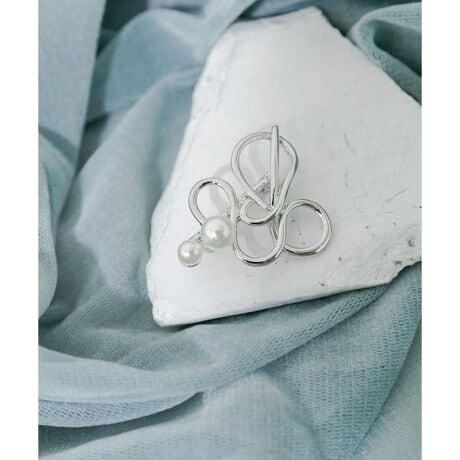 動きのあるシルバーのメタルラインが絡み合うアーティスティックなデザインのブローチ。
