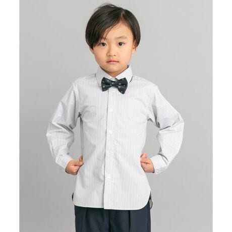 LIFE STYLE TAILORと同じ素材で作成したオケージョンシャツをお作りしました。シワが残りにくいイージーケア加工とマシンウォッシャブル対応の機能付きで手入れのしやすさが魅力です。幅広いコーディネートに合わせやすいベーシックなWHITEと、華やかをプラスできる大人びたストライプ柄の2色展開。トレンドに左右されないセミワイドカラーで、適度な台襟の高さにこだわったアイテムです。後ろにダーツを入れてジャケットと着用した時にすっきり見えるように仕上げました。卒園・入学式はもちろん、発表会やちょっとしたお食事会など幅広く着回していただけます。