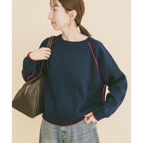 表と裏で異なるカラーを楽しめる、リバーシブル仕様のニットプルオーバー。その日の気分やボトムスに合わせて印象を切り替えられる一着です。ワードローブの主役として、着こなしの幅をぐっと広げてくれます。 肩のラインを拾わず、自然と女性らしい柔らかなシルエットを描くラグランスリーブ仕様。袖の付け根にはさりげない配色ステッチを施し、シンプルながらも表情のあるデザインに仕上げました。 身幅は程よくゆとりを持たせつつ、太めのリブで切り替えた裾が全体をキュッと引き締め、どんなボトムスとも好バランス。軽やかな着心地で、春先から長く活躍する万能ニットです。