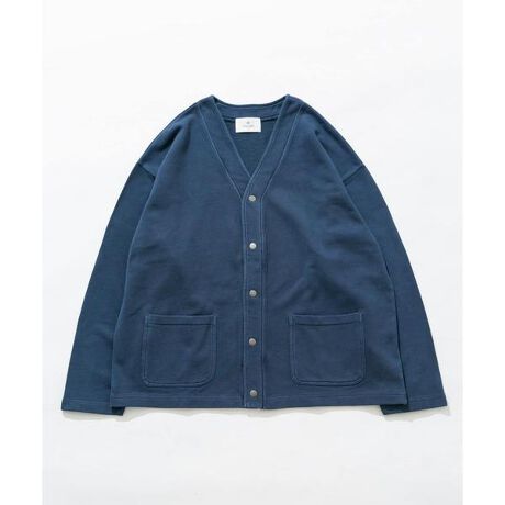 スウェット地のソフトな風合いで羽織りやすいVネックカーディガンです。スナップボタンとポケット付きのシンプルなデザインで、シャツやTシャツの上にさらっと羽織るだけでこなれた印象に仕上がります。