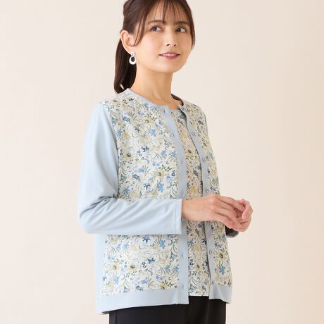 フロントにボタニカル柄をプリントしたカーディガン。
