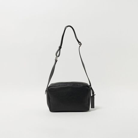 シボ革で仕立てた長方形タイプのショルダーポーチ。