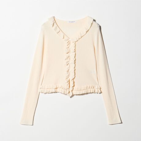 マニッシュボトムとのミックスコーデに活躍するフリルカーディガン
