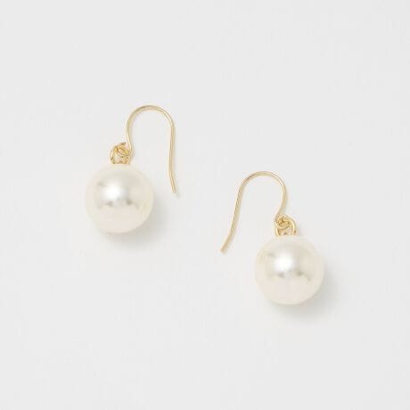 一粒で存在感のあるパールモチーフを使用したフックタイプのピアス。