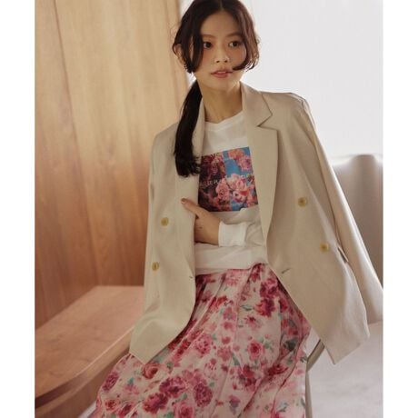 ■デザイン・パンツにもスカートにも合うダブルブレストのテーラードジャケット。・フラップポケットのタックが甘すぎないニュアンスのあるフェミニンシルエットを演出してくれます。・フラップは玉縁仕様で収納可能でタックを前面にしたスタイルも◎。・袖口は共布見返しを広めに仕立てているので袖をブラウジングや折り返しても素敵に着用いただけます。・スタイリングを邪魔しないシンプルなスコッチボタン。裏なし仕様です。