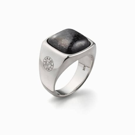 深淵な輝きを放つヌーマイトをあしらった、存在感際立つシグネットリング。