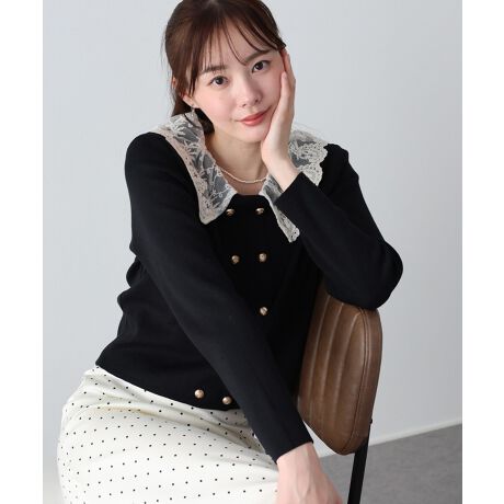 きちんと見え×フェミニンな金ボタンレース衿ドッキングニットカーディガン