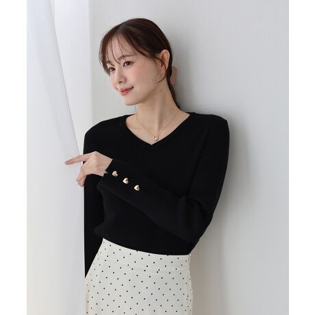 袖口のハート型のゴールドボタンでキュートなアクセントを加えたニットトップス。