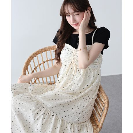裾に向かってふんわりと広がるティアード切り替えが、女性らしいロマンティックな揺れ感を演出。 リゾートスタイルにはもちろん、デイリーに着こなしても気品溢れる、主役級の一着です。