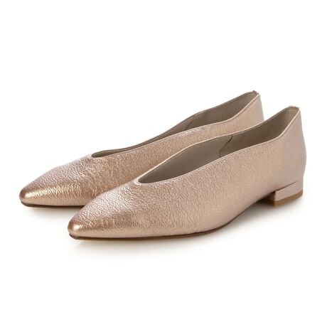 深めのカッティングがレトロな印象のフラットシューズ。