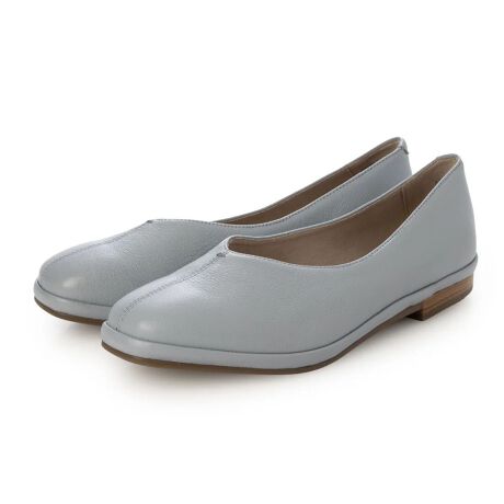 女性らしいアクセントを添えるVカットの履き口がポイントのフラットパンプス。