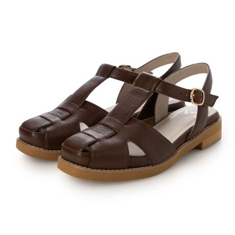 つま先をしっかり覆うレザーの編み込みが、ナチュラルでやさしい印象を演出。