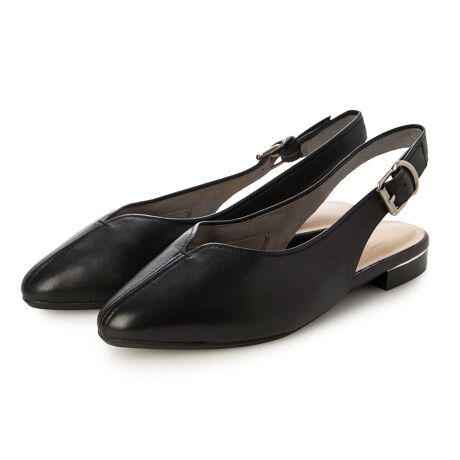 シンプルながらもさりげないセンターシームが大人の足元をすっきり綺麗に見せるバックベルトパンプス。