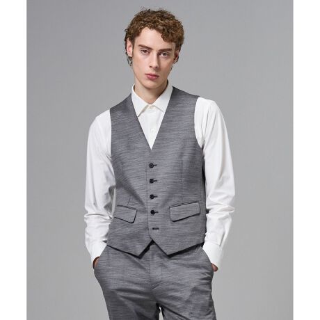 ベーシック、ジャケットイン型ジレ。ウエストシェイプの効いたスッキリシルエット。