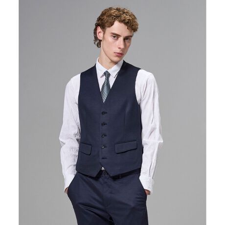 ベーシック、ジャケットイン型ジレ。ウエストシェイプの効いたスッキリシルエット。