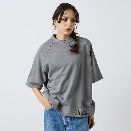 リラックスシルエットの半袖スウェット■ 奥行きのあるピグメント加工&ダメージデザイン・ピグメント染めで表現された絶妙な色ムラ感・袖口や裾にダメージ加工をプラス・リアルなヴィンテージの雰囲気を楽しめる