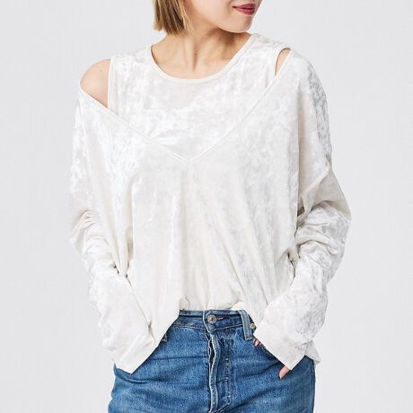 上品に煌めくベロア素材で作り上げた、カットソーとタンクトップの2枚セット。