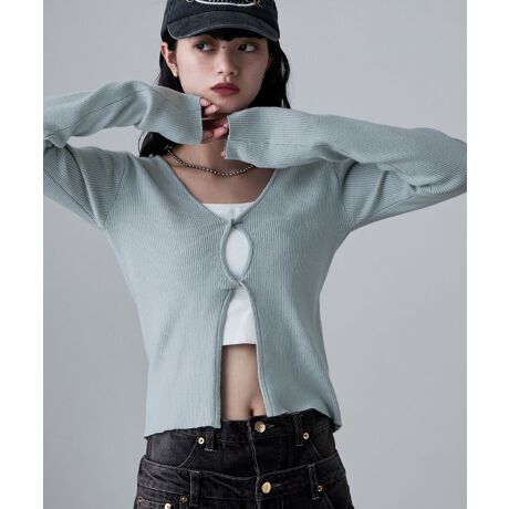 肌感のある前開き風のツイストデザインがスタイリングに奥行きをもたらし、
