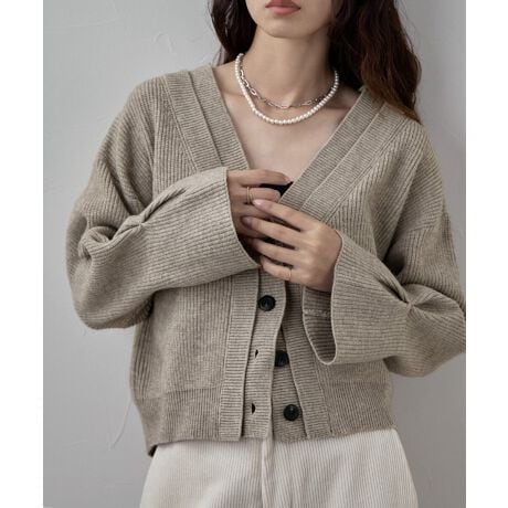 etoll. エトル きゅっとつまんだキャンディスリーブが目を惹くニットカーディガン。