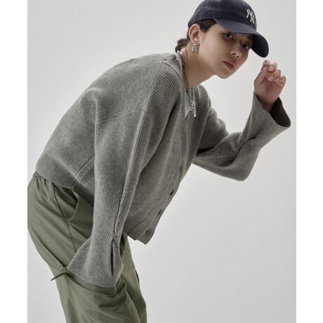etoll. エトル きゅっとつまんだキャンディスリーブが目を惹くニットカーディガン。