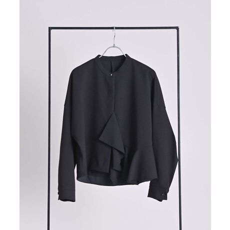 ふくらみとハリ感が今っぽいダブルフェイス生地を使用した、アシメフリルデザインのコクーンブラウス。