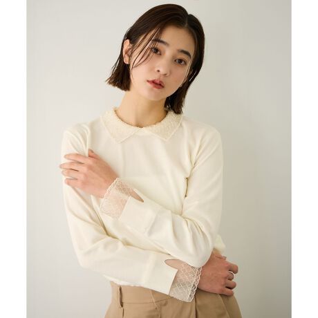 ビジュー刺繍をあしらった衿とカフスが取り外し可能なプルオーバー。