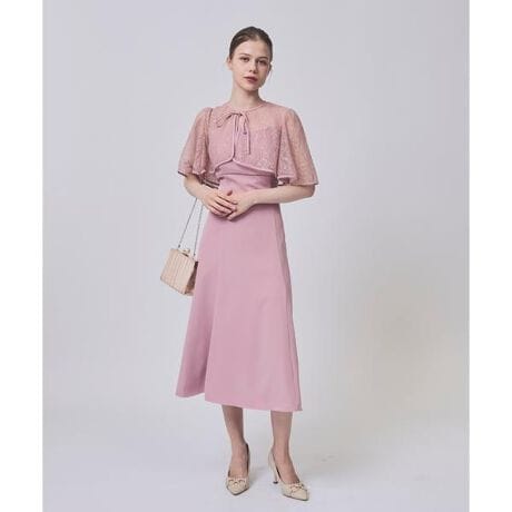 【透け感レースが特別な日を華やかに彩る、レースボレロセットアップドレス】【Point】・繊細なレースボレロとキャミソールドレスがセットになった、特別感のあるドレスワンピース。・透け感のあるレースが華やかさを添え、程よく肌をカバーしながら女性らしい印象を演出します。・ドレスはすっきりとしたセミフレアシルエットで、落ち感のある素材が縦のラインを強調し、スタイルアップ効果も◎・バックスタイルはレースアップデザインのため、サイズ調整が可能なのも嬉しいポイントです。・ワンピースはサイドファスナー仕様で、着脱しやすいのも魅力。・単品使いもでき、ボレロを外せばキャミワンピースとしてデイリーからオケージョンまで幅広く活躍。・結婚式やパーティー、二次会などの特別なシーンにおすすめの一着です。ケア方法:ドライクリーニング透け感:ボレロのみあり裏地:ワンピースのみあり伸縮性:なし光沢感:なし生地の厚さ:〈ワンピース〉中肉 〈ボレロ〉薄手