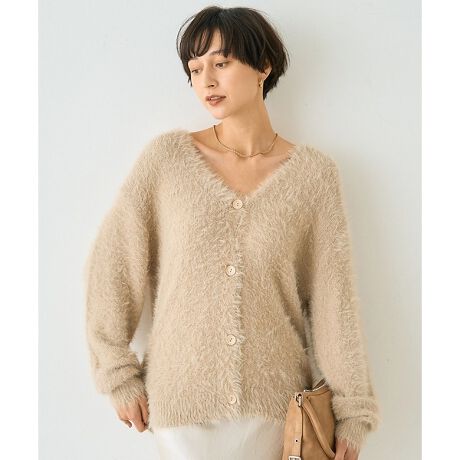 ふわふわとした毛足感と、さりげなくきらめくラメ糸が魅力のラメシャギーニットカーディガン。