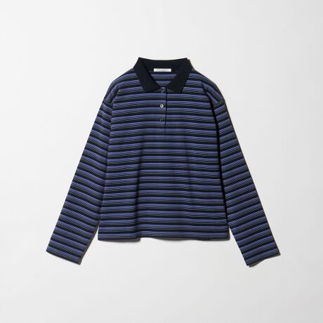 ボーダー柄が着こなしのアクセントになるポロシャツ型のプルオーバー。