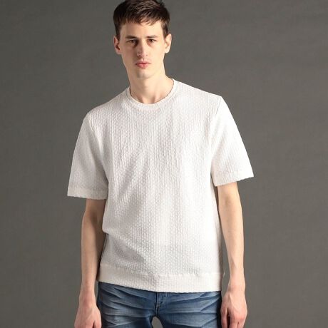 存在感のある表情豊かな柄を活かしたクルーネックニットTシャツ。