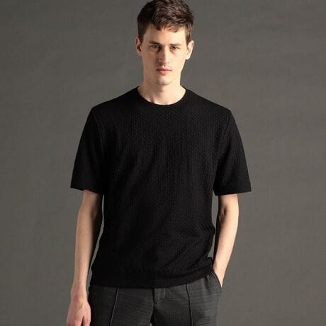存在感のある表情豊かな柄を活かしたクルーネックニットTシャツ。