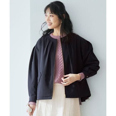 季節の変わり目に嬉しい、撥水・花粉リリース・UVカット機能付き柔らかな印象を演出するノーカラーブルゾン