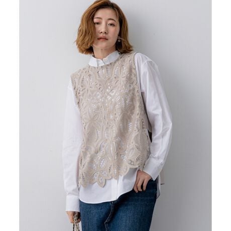 繊細なレースが魅せる、大人のための上品レイヤードベスト