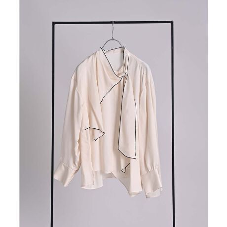落ち感となめらかな肌触りが心地いい、キュプラフィブリル素材を使用したアシメボウタイブラウス。