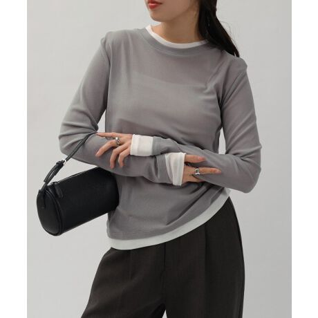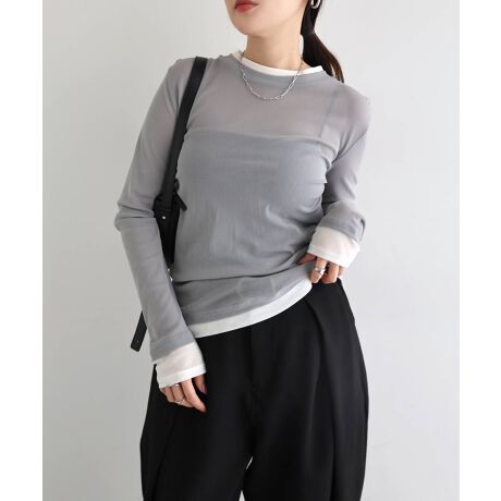 シアー バイカラー レイヤード 長袖 トップス