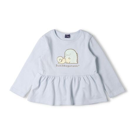 人気の「すみっコぐらし」デザインアイテム。すみっコぐらしのキャラクターのプリントが可愛いトレーナー、スウェット。秋から春まで長く着られる裏毛素材。ピンクはしろくま、ふろしき、サックスはとかげ、にせつむりのプリント入り。ギフトやプレゼントにもオススメな綿100%アイテム。(ベビーサイズのみ肩ボタン仕様になります。)【アイテム】トップス シンプル ガーリー フェミニン カジュアル お洒落 オシャレ かわいい 可愛い 普段着 デイリーウェア お出かけ着 お外着 お外遊び着 子ども こども 女児 女の子 ガールズ キッズ ベビーサイズ トドラーサイズ 幼稚園 保育園 小学校 通園 通学 小学生 2025年秋冬物新作 丸高衣料 ロングスリーブ 長袖 コットン100% ピンク サックス 水色 クレセント