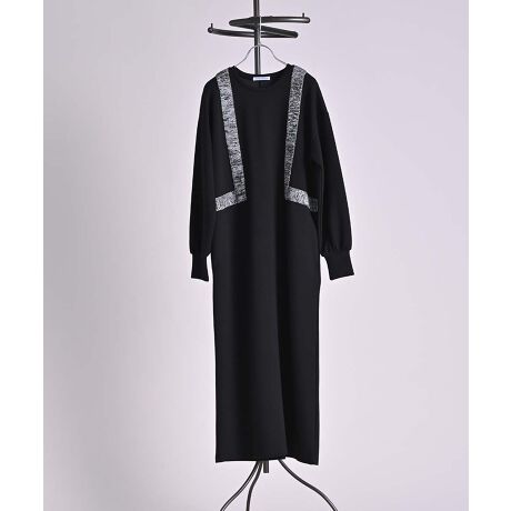もっちり柔らかなダンボールニットに、ラメのニットテープをあしらったデザインワンピース。