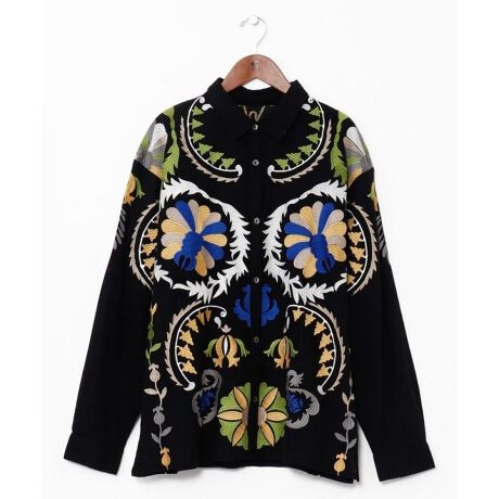 [型番:ILL-6104-2026]カザフスタンの伝統刺しゅう「スザニ」をモチーフにしたメンズシャツ。背中の大きな刺しゅうが印象的で、現地の雰囲気をリアルに再現。刺しゅうの美しさが際立つ一枚で、コーデの主役に。