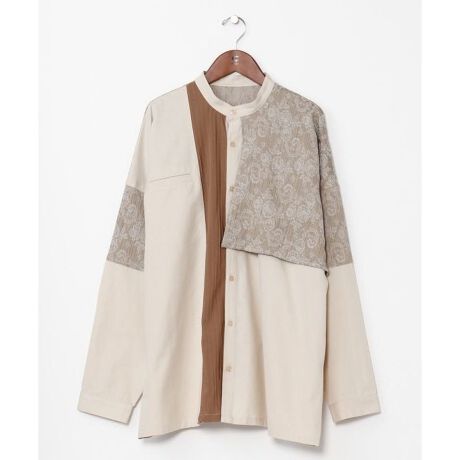 [型番:CAA-6103-2026]モン族をイメージしたアシンメトリー切替シャツ。花柄ジャカードと、プリーツ生地の異素材使いがモードで上品な一枚。