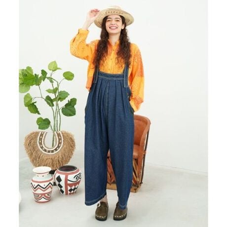 [型番:NSR-6102-2026]ウエスタンモチーフの刺しゅうが施されたデニムサロペット。ゆったりとしたサイズ感で男女問わず着用可能。