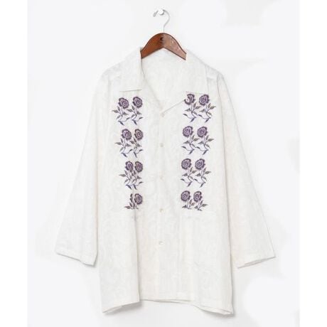 [型番:IAC-6113-2026]花鳥風月を思わせるジャカード柄と薔薇の刺しゅうを配したシャツ。ベトナムの民族衣装アオザイを着想に、シャツカラーでさらりと羽織れる主役級トップス。