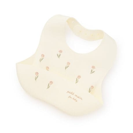 可愛らしいモチーフがデザインされたお食事スタイです。食べこぼしをキャッチする立体的な設計がポイント。シリコン製なので、汚れを水で簡単に洗い落とせます。首まわりはお子さまに合わせてサイズを調節できる仕様です。