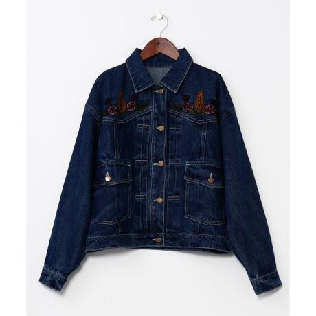 [型番:NSR-6103-2026]ウエスタンブーツ、カーネーション、カラベラを刺しゅうしたデニムジャケット。ヒッピーカルチャーを感じる切り替えデザイン。