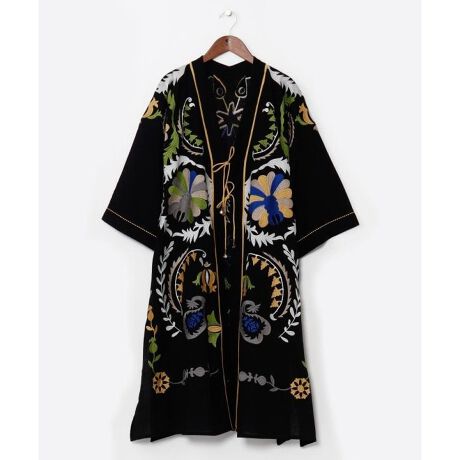 [型番:ILL-6106-2026]カザフスタンの民族衣装から着想を得たスザニ刺しゅうカーディガン。着物スリーブのゆったりとしたシルエットが、オリエンタルムード漂う一枚。羽織るだけで個性が光るデザイン。