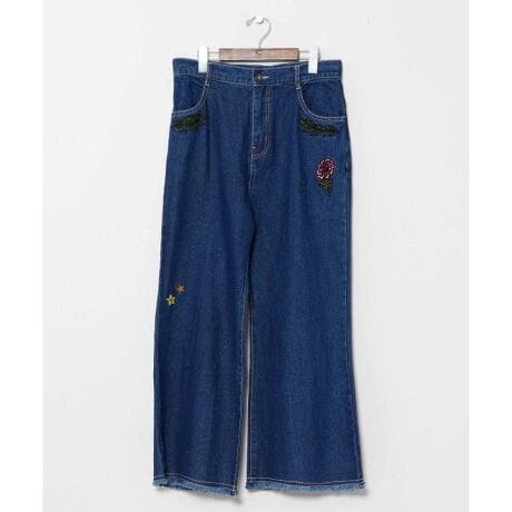 [型番:NSR-6101-2026]ウエスタンブーツとカラベラ刺しゅうが目を惹く細身のベルボトムパンツ。ヒッピースタイルに映えるデニムアイテム。