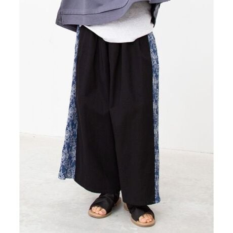 [型番:CAA-6104-2026]モン族から着想を得た異素材切替のパンツ。花柄ジャカード生地とワイドシルエットが個性を引き立てるデザイン。