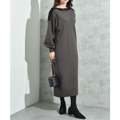 毎シーズン人気のボートネック配色!今季はワンピースも仲間に入り!ネック配色が目を惹き、シンプルになりがちないつものスタイリングに映える主役級のニットワンピースです。控えめなボートネックとドロップショルダーのバランスが絶妙◎さらりと合わせるだけでこなれた印象に決まり、さりげないボリューム袖はニュアンスが出て女性らしさを演出してくれます。また体のラインを拾いにくく、着心地も抜群の1枚です。
